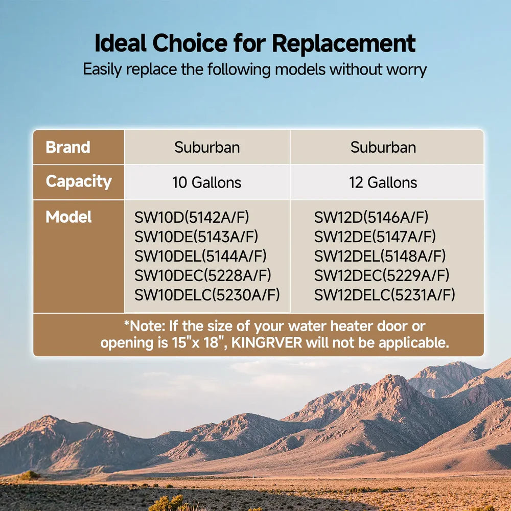 - Easily Replaces Old One: Suburban, Atwood, Dometic 10/12 gallon water heater, etc