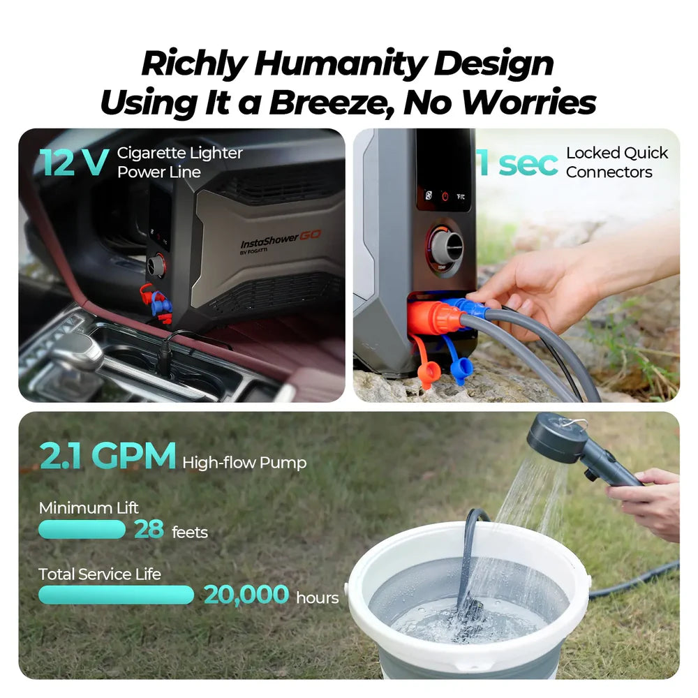 Fogatti InstaShower GO Outdoor Portable Water Heater with Water Pump, 19000BTU