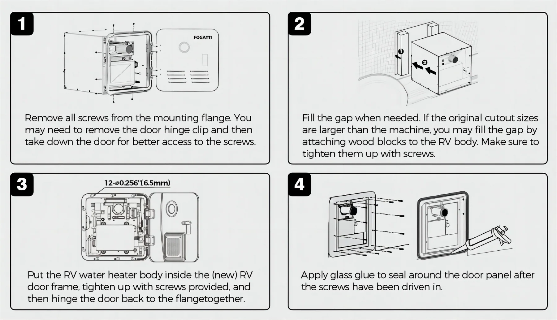 - Applicability: If you are replacing your Atwood 6 gallon water heater with a Fogatti RV water heater. Please install with this product.